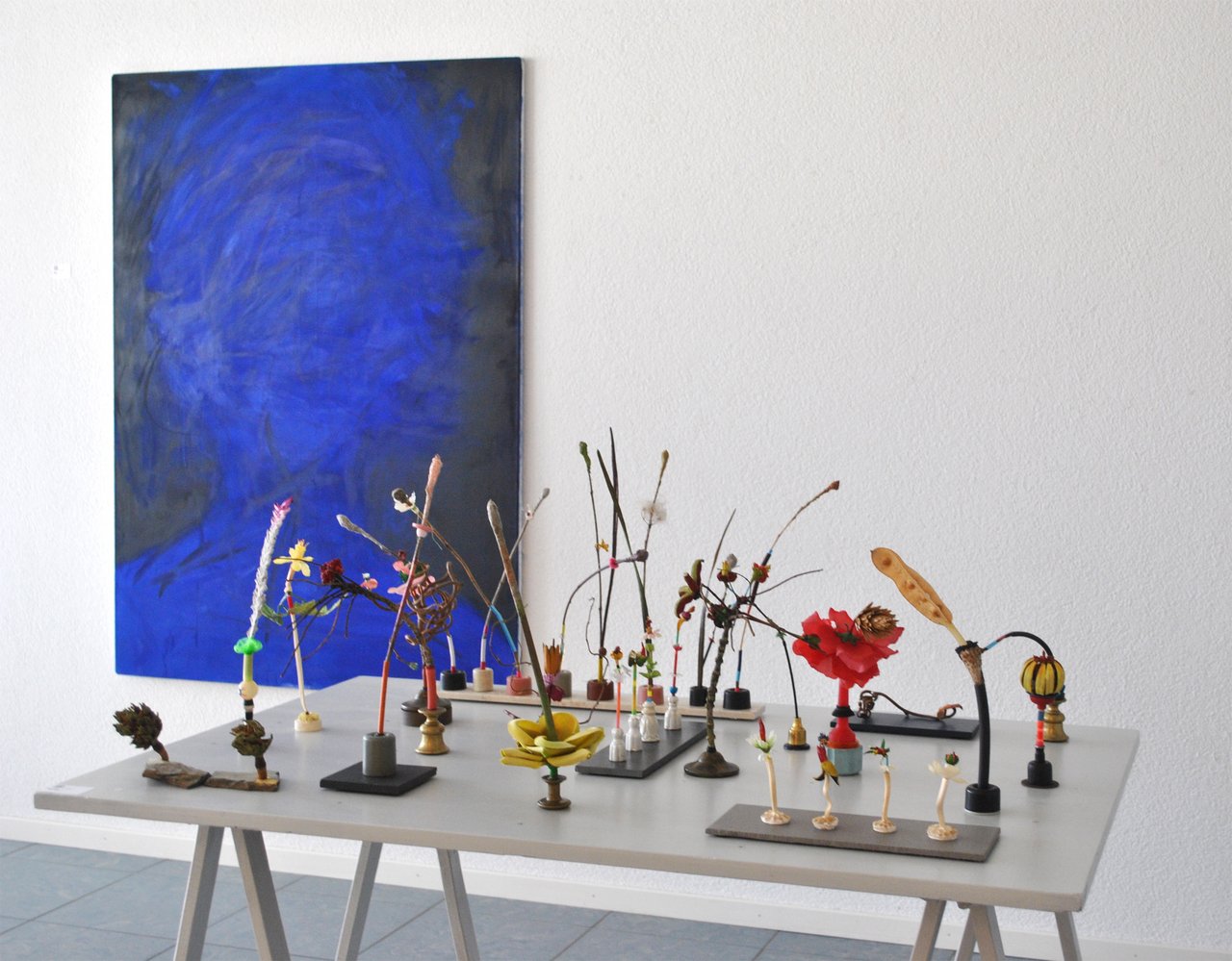 Malerei und Objekte verbinden sich zu kleinen ungewöhnlichen Geschichten.