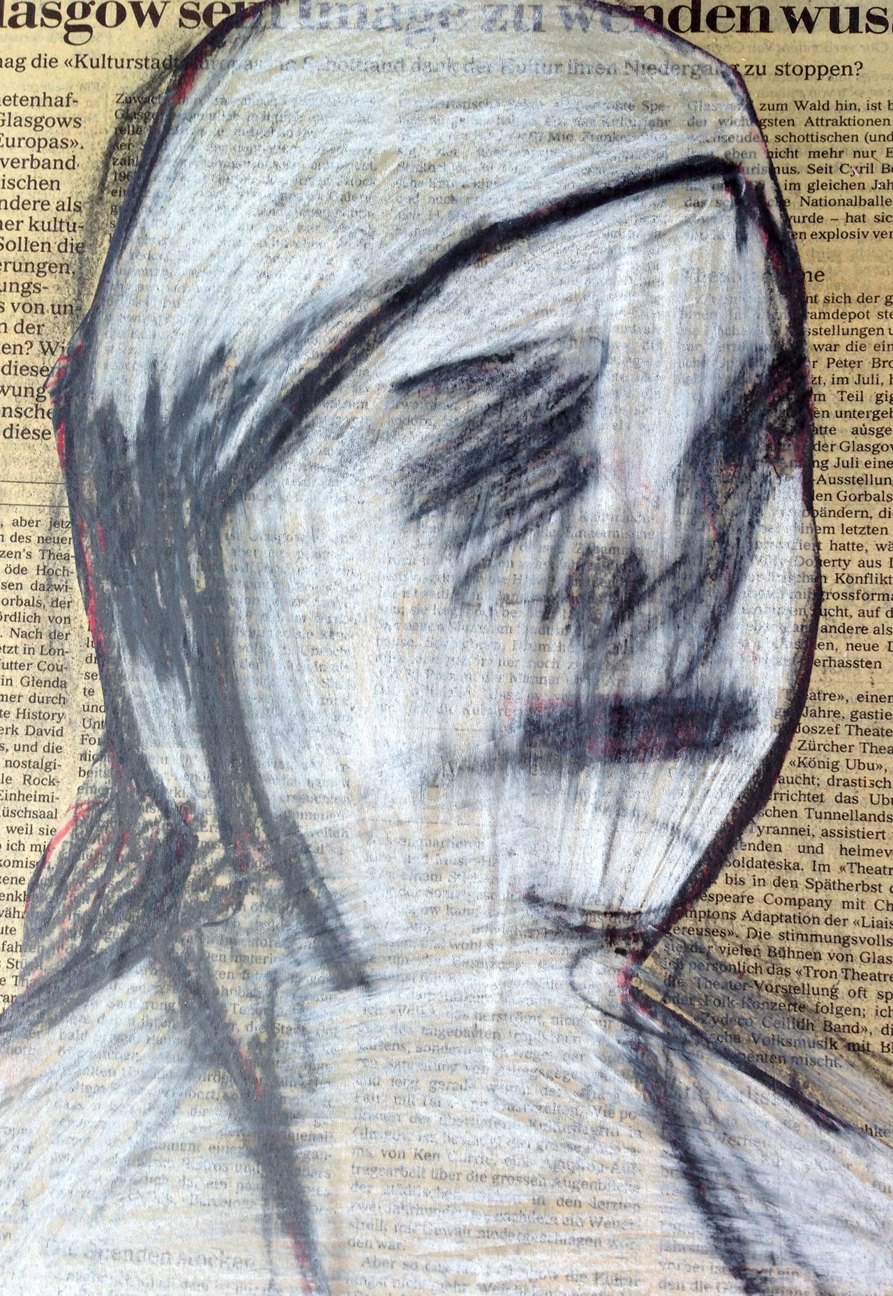 Während eines Jahres treffe ich Mitarbeitende von Kuhn Bieri einzeln zum Gespräch, fotografiere sie, und bearbeite die Fotografien malerisch. Die Portraitreihen werden durch eine Textinstallation ergänzt – jeder Mitarbeiter/-in hat mir einen Satz angegeben, der für sie/ihn wesentlich ist im Leben.
