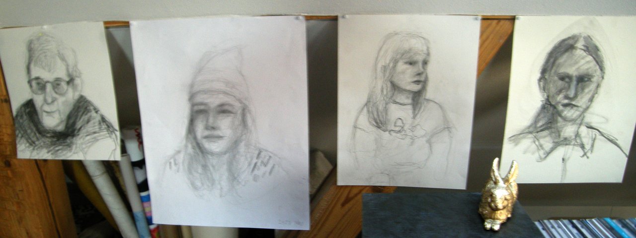 Und immer wieder sind es Portraits, die ich zeichne, kritzle, male, gross und klein, auf Papier und Leinwand - im März 2024 zeige ich "meine Freunde" im Atelier 370 in Bantigen.